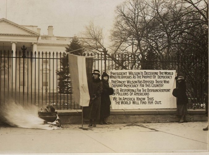 6 januari 1919 brände The National Women’s Party kopior av President Wilsons tal i en urna utanför Vita huset. Gruppen demonstrerade för rösträtt för kvinnor och de ville visa på presidentens dubbelmoral eftersom han ofta talade om medborgerliga rättigheter och friheter.